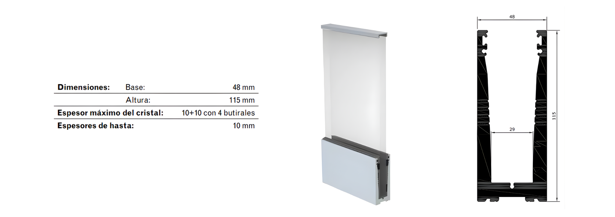 Sistema de cristal panorámico, que no requiere ningún elemento estructural que impida la visión a través de la barandilla. Perfil homologado y certificado.