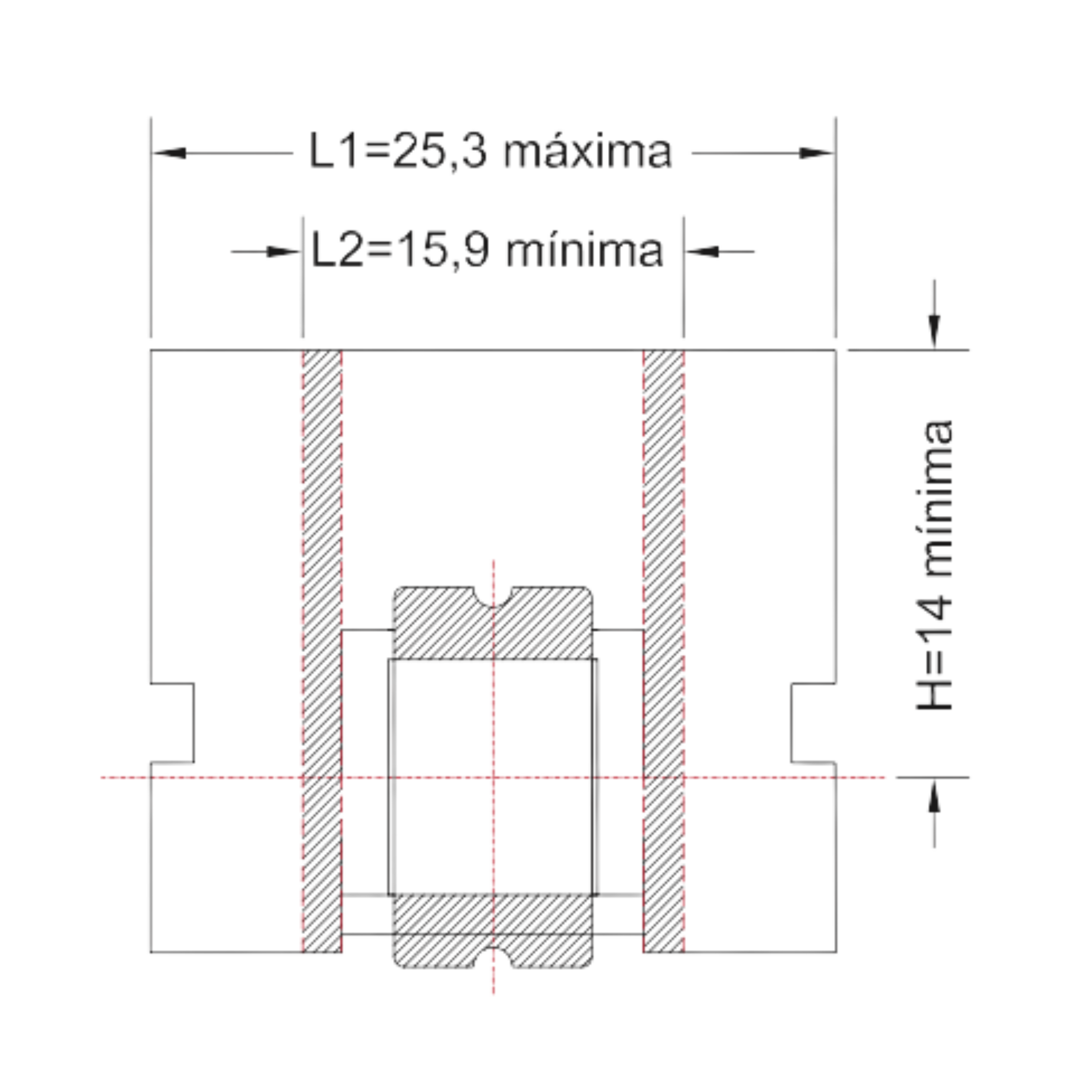 Alçada H: 14 mm mínima amb regulació de rodes de 3 mm. |
