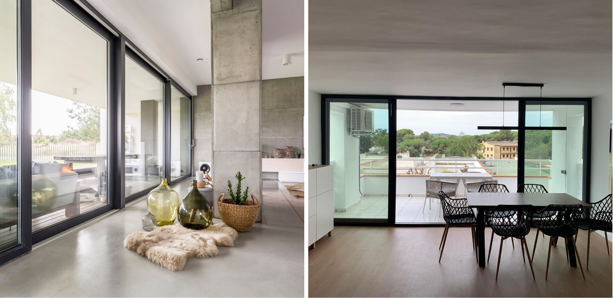 Esta corredera destaca por su diseño limpio, su capacidad para grandes acristalamientos y sus elevadas prestaciones térmicas y acústicas.