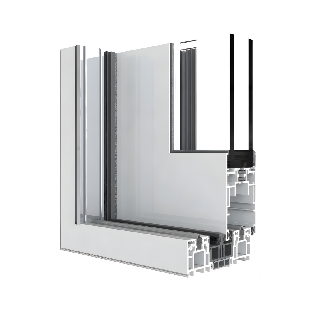 Admite acristalamientos de hasta 46 mm, incluyendo vidrios de doble cámara de aislamiento tipo “TRIPLEX”. Sus hojas ajunquilladas facilitan notablemente la instalación del vidrio, optimizando los tiempos de montaje y asegurando un acabado preciso y de alta calidad.
