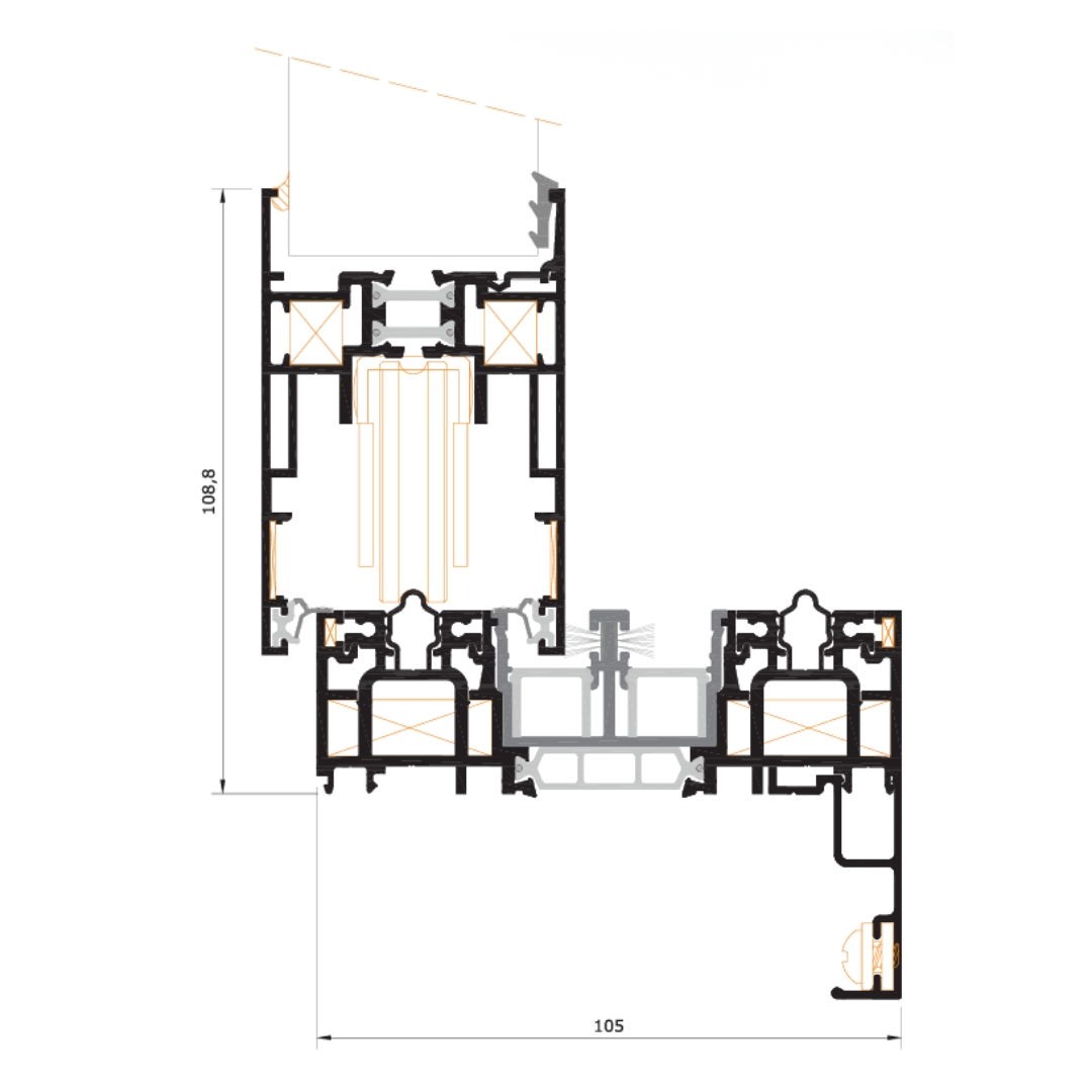 La corredera incorpora un innovador sistema de “tótem” de PVC, ubicado en el centro del marco, que potencia las prestaciones de rotura de puente térmico (RPT) del sistema. Asimismo, permite la incorporación de una felpa adicional de estanqueidad entre marco y hoja, mejorando el aislamiento y el confort interior.