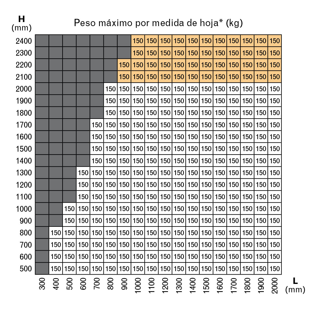 Ventana 2 hojas 1500 x 2000 mm | 3,23 | 2,44 | 2,08 |