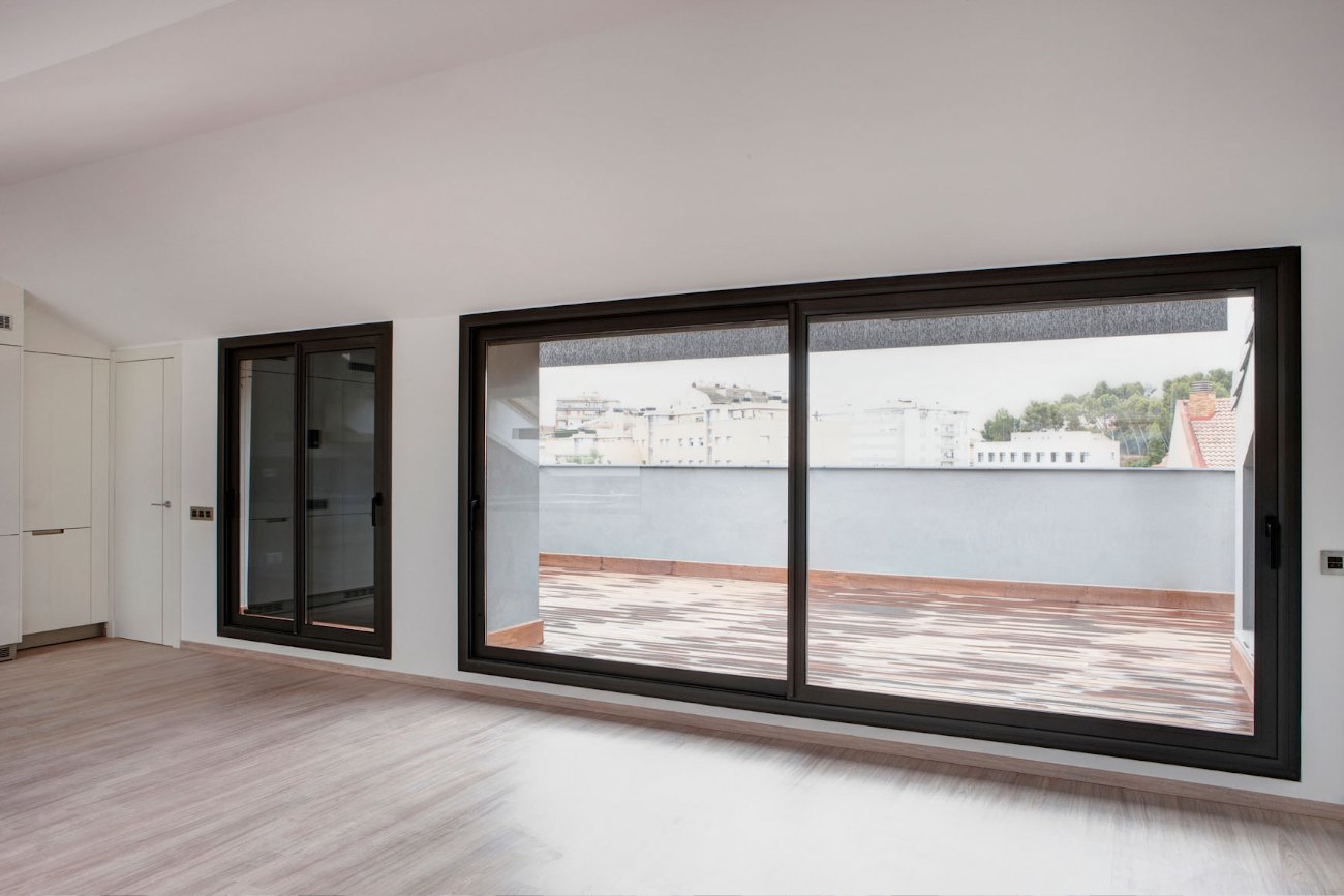 Corredera perimetral con RPT (rotura de puente térmico) con marco de 95 mm que presenta unas buenas prestaciones en banco de ensayos y una fabricación rápida y sencilla. Especialmente indicada para ventanas y balconeras correderas de hasta 2300 mm.