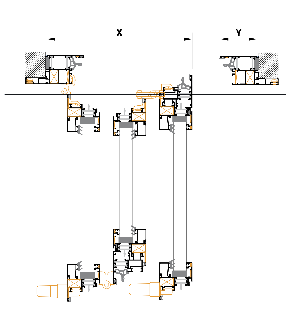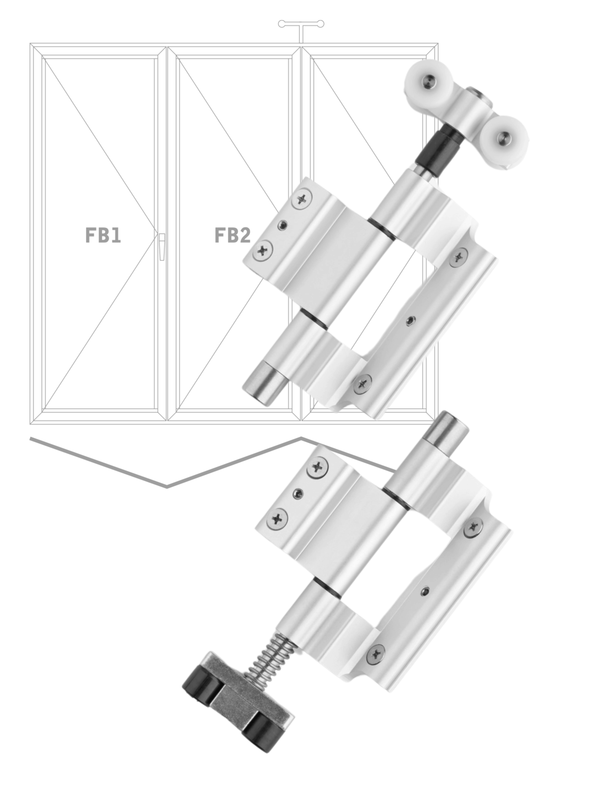 Éstos se pueden aplicar de forma universal en cualquier sistema de practicable de cámara europea que disponga de un marco de una altura mínima de 40 mm en el lado interior. Dentro de los sistemas Innaltech, estos herrajes son de aplicación estándar en las series Alfil 45 (PF43), Practic 45 RPT (PT45) y Practic 54 RPT (PT54). Woorbel, la división de fabricación y elaboración de accesorios de Grifell Pons SL, dispone de herrajes específicos para la elaboración de plegables de cámara europea. Éstos se pueden aplicar de forma universal en cualquier sistema de practicable de cámara europea que disponga de un marco de una altura mínima de 40 mm en el lado interior. Dentro de los sistemas Innaltech, estos herrajes son de aplicación estándar en las series Alfil 45 (PF43), Practic 45 RPT (PT45) y Practic 54 RPT (PT54). El sistema va suspendido desde la guía superior mediante carros de cuatro ruedas con cojinetes de agujas de ejes inox de 6 mm. Estos carros se deslizan suavemente dentro de una guía de doble banda de rodadura que garantiza la ausencia total de cabeceamientos. La guía inferior puede ser sobrepuesta o bien empotrada. Esta última posibilidad, en la Practic 54 RPT, es compatible con la utilización de peana, siendo ésta una aplicación óptima, ya que combina la practicidad del sistema plegable, su gran estanqueidad y la ausencia de obstáculos inferiores sobre el suelo.