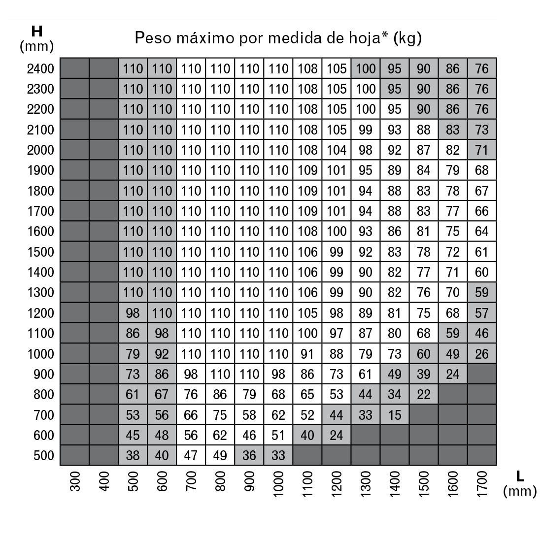 Ventana 1 hoja 820 x 2100 mm | 2,41 | 1,50 | 1,22 | 1,01 |