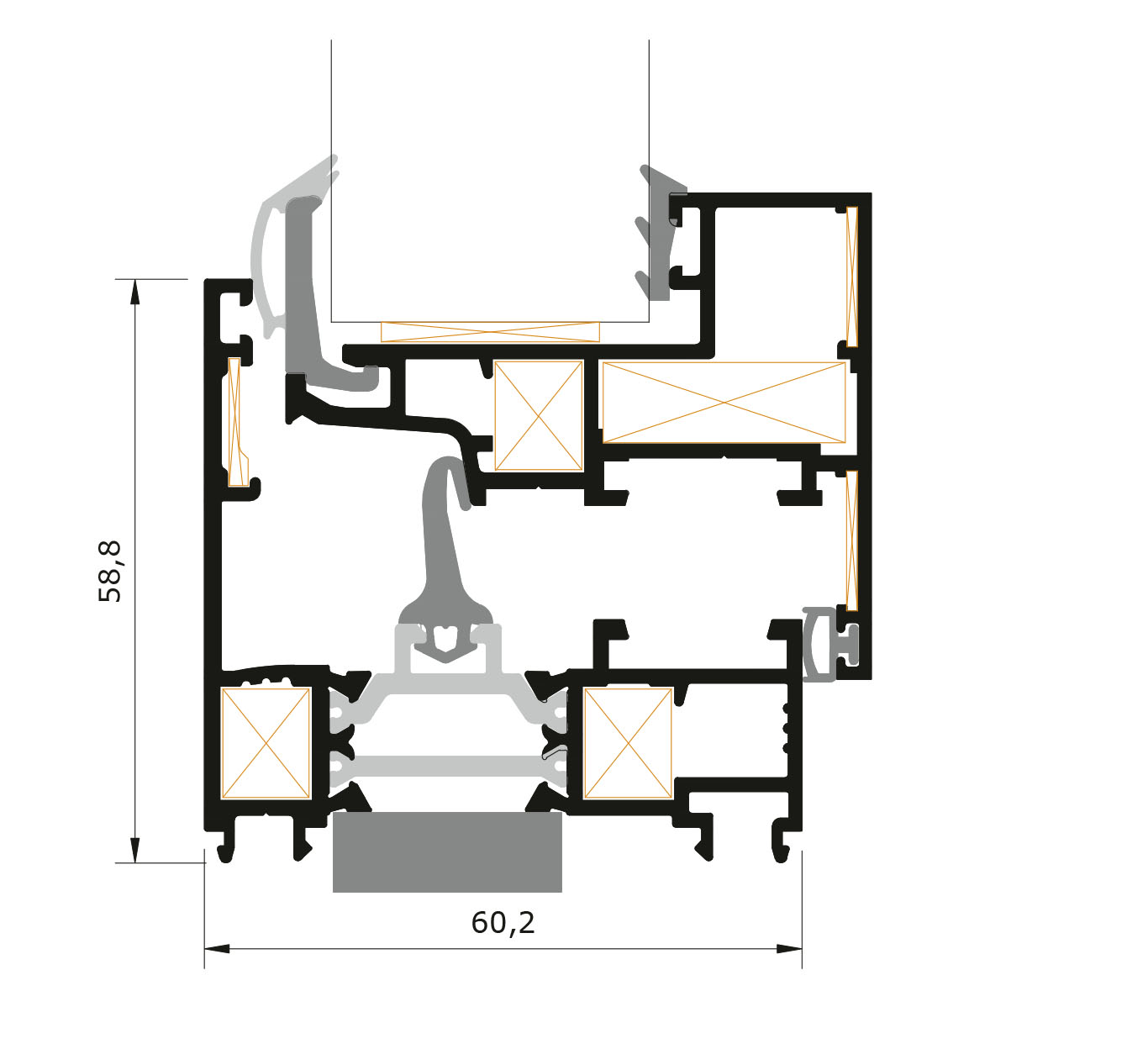 Ésta es una evolución de la Practic Hoja Oculta 70 RPT (HT70) y, al igual que su hermana mayor, presenta sus mismas dimensiones de superficie vista de marco; tan solo 58,8 mm. confiriendo al sistema un carácter marcadamente minimalista y, por tanto, ofreciendo una mayor superficie acristalada. Esta menor dimensión hace que las propiedades estéticas intrínsecas de un sistema de hoja oculta adquieran un mayor relieve con la HT60. Por todo esto, esta tipología de ventana es la preferida de arquitectos e interioristas. La rotura térmica se consigue mediante poliamidas de 24 mm en marco y el junquillo de coextrusión plástica en hoja. Con estos materiales, se consiguen unos niveles de transmitancia térmica de marco similares a los que da una practicable de corte clásico como la Practic 45. Pero a diferencia de ésta, las dimensiones del cristal son mayores, por lo que el resultado térmico del conjunto de la ventana también es mayor y apropiado para casi todas las zonas climáticas que determina el CTE.