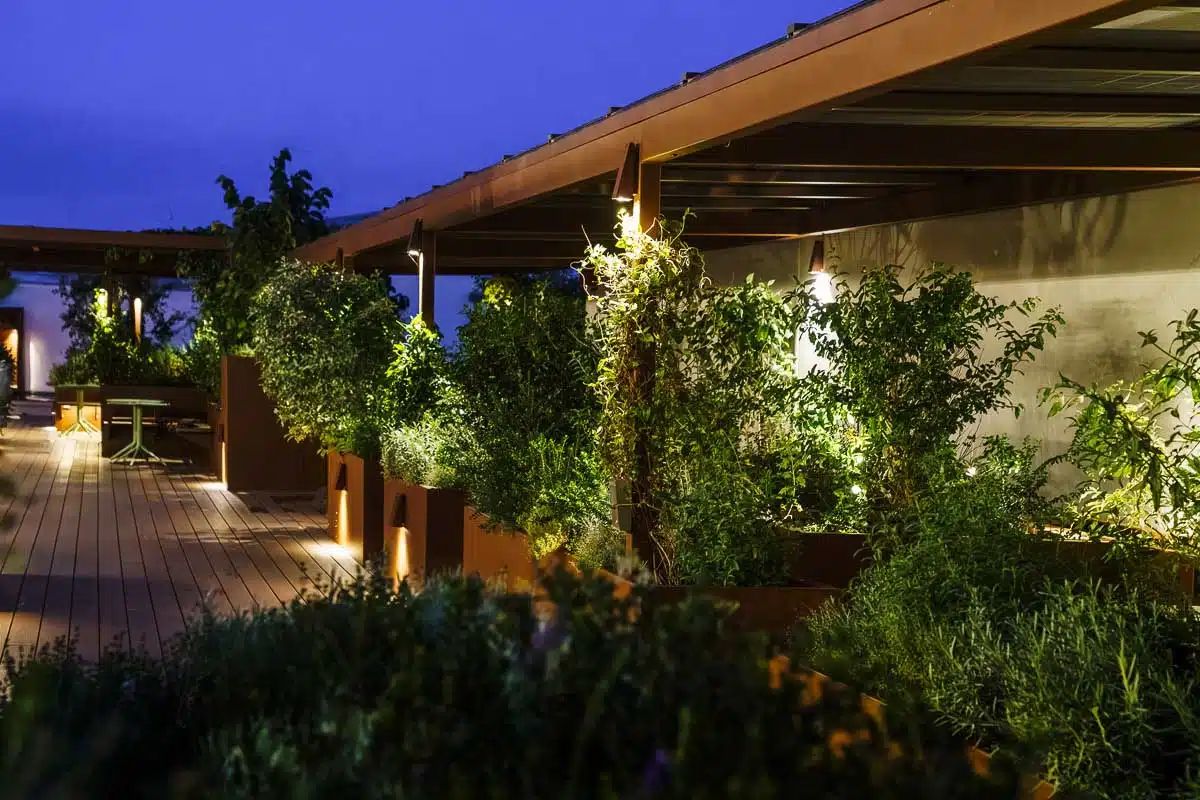 Closed permite conjugar diferentes modalidades de pérgola al mismo tiempo. Se pueden realizar laterales con tubos y lamas y, es posible hacer el techo con cristal o placas solares.